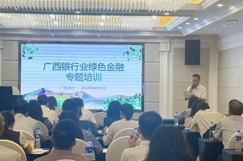 8月30日,广西银行业协会在南宁举办绿色金融专题培训,深入贯彻落实党的二十届三中全会和中央金融工作会议精神,帮助全区银行业理解掌握绿色金融新政策、新机遇和新挑战,助力推动广西银行业绿色金融高质量发展。广西银行业协会副会长兼秘书长毛宁出席培训班并作培训小结,各银行机构相关部门负责人、各市银行业协会相关负责人及工作人员现场参加培训,各市银行业分支机构参加线上直播培训。