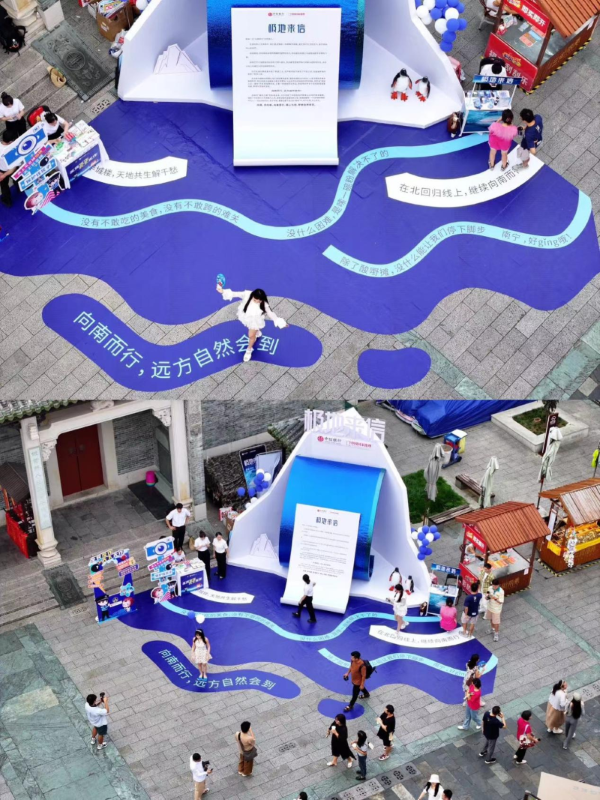 本次活动,该行围绕“向南而行,远方自然会到”的主题,通过“做难而正确的事”的内核,将极地科考事业与中信银行品牌形成精神关联,以开拓、责任、执着、前瞻、创新等精神为结合点,并融入具有南宁特色的广告语,将“向南而行”的理念与南宁的人文精神相融合。向南亦向难,“极地来信”艺术装置在绿城南宁的连续展出,不仅是对中国极地考察向难而行的无畏精神致敬,更是将金融创新与艺术创意相结合,将极地风光与南宁地域文化相融合,散发出新的独特魅力。让观众沉浸于自然之美的同时,又能领略中信银行在金融科技领域的探索成果与成就,传播该行品牌温度。