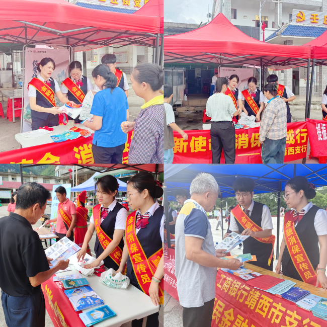 当天上午,宣传小组一行带着丰富的宣传资料、生动的案例展示和专业的讲解团队,来到了靖西市壬庄乡壬庄街。活动现场,宣传小组通过设立宣传咨询台、摆放宣传展板、发放宣传手册等多种形式,向当地村民普及了基础金融知识、消费者权益保护、反电诈、反洗钱、征信管理以及支付结算等实用信息。