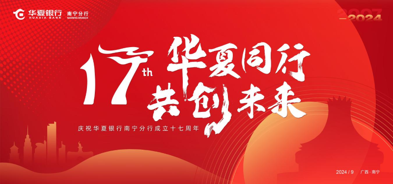 2007月9月26日,华夏银行南宁分行拉开了深耕八桂、服务八桂、润泽八桂的发展序幕,自此,已经扎根八桂17年。