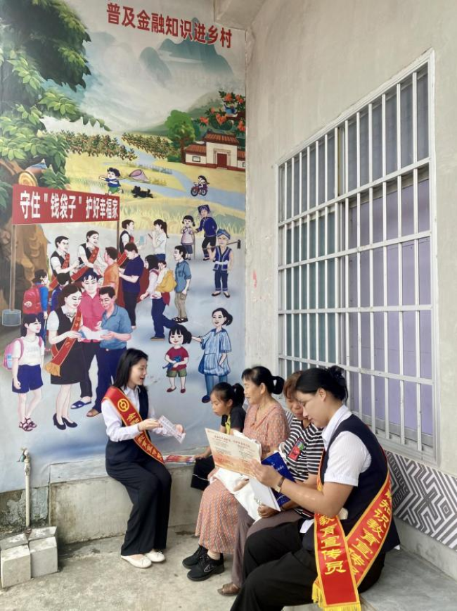 我为村民刷面墙,绘就美丽乡村。为了创新宣传模式,中国银行广西区分行充分利用示范基地邻近大山村小学和文化活动广场的地理优势,结合当地生活特色,以“守住‘钱袋子’护好幸福家”为主题,在基地外墙绘制了一幅生动的金融墙。同时,该行还在外墙开辟了四个金融宣传专栏,围绕普惠政策、“断卡”行动、防范电信网络诈骗等社会热点,通过漫画长图、以案说法等方式,为村民提供图文并茂的金融知识宣传。