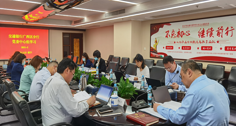 2月23日,交通银行广西区分行召开2021年春节后首次党委中心组学习会议。通过会前利用微信群自学党史微视频,会上集中学原文、谈心得体会等方式学习了习近平总书记在党史学习教育动员大会上的讲话,新修订的《中国共产党党员权利保障条例》《中国共产党统一战线工作条例》等党的规章制度。党委书记、行长江洲同志主持会议并作中心发言,党办、组织部、纪委办负责人列席。