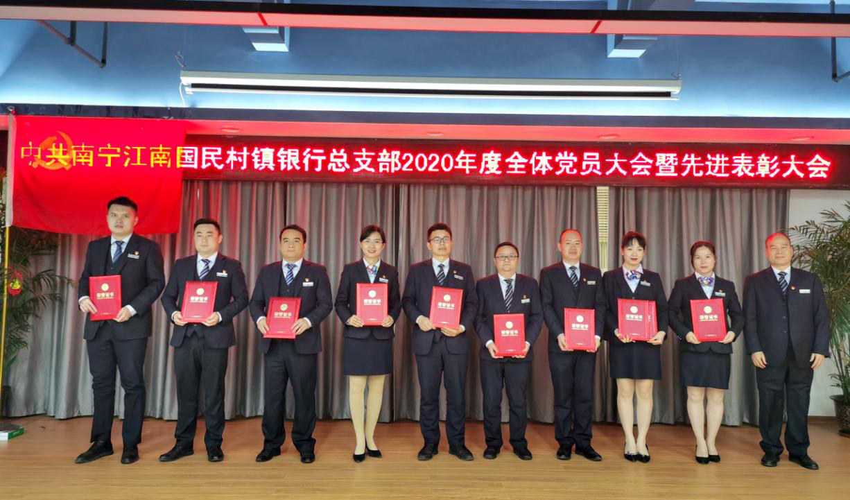 在随进行的表彰大会上,原维文书记分别为2020年度先进党支部、优秀党务工作者、优秀共产党员颁奖。各党支部和广大党员要以受到表彰的先进支部和先进个人为榜样,始终保持蓬勃朝气、昂扬锐气,充分发挥党组织战斗堡垒作用和共产党员先锋模范作用,永葆党的先进性和纯洁性,进一步创新思维、真抓实干、担当作为,为党旗添彩,为国民争光。(来源:南宁江南国民村镇银行)