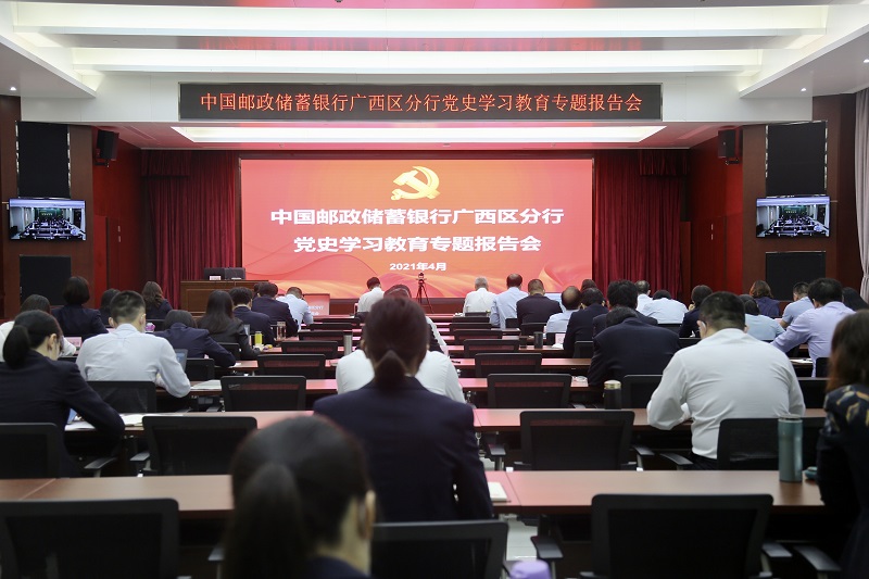 邮储银行广西区分行党史学习教育专题报告会暨党史学习教育动员会。