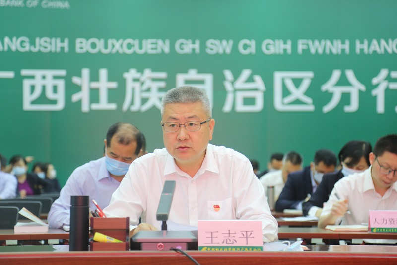 邮储银行广西区分行党委书记、行长王志平作党史学习教育动员讲话。