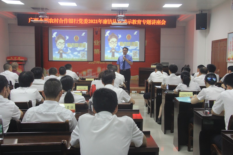 自治区联社党委自年初在全系统启动“八个一”廉政文化建设活动以来,全区各级农村合作金融机构积极响应,围绕《广西农村合作金融机构2021年党风廉政建设和反腐败工作要点》,结合当前党史学习教育,开展形式多样的警示教育活动和廉洁从业专题培训,切实增强全辖干部员工拒腐防变意识,引导党员干部筑牢廉洁自律的思想堤坝。