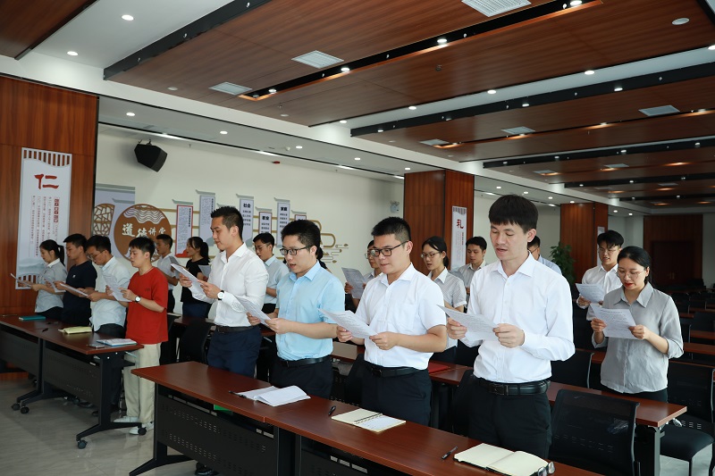 (临桂农商行新员工庄严宣读《廉洁从业承诺书》)