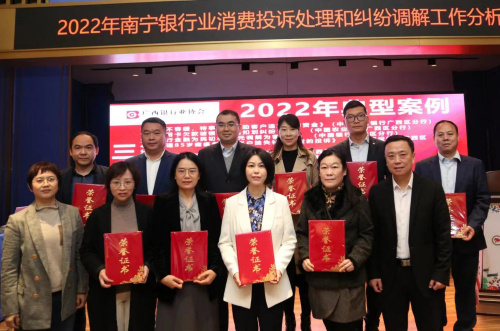 会议认真分析了2022年南宁银行业消费投诉处理和纠纷调解总体情况,并对消费投诉处理和纠纷调解工作存在的问题、下阶段工作提出了具体工作建议。相关银行机构分享了在适老化金融服务示范网点创建、消费者权益保护、诉调对接方面的工作经验,并对贯彻落实《银行保险机构消费者权益保护管理办法》工作情况作了交流。会上,李小冰副处长、毛宁副会长兼秘书长为2022年广西银行业消费投诉处理和纠纷调解典型案例评比获奖单位和2022年金融纠纷多元化解工作先进单位及优秀调解员颁奖。