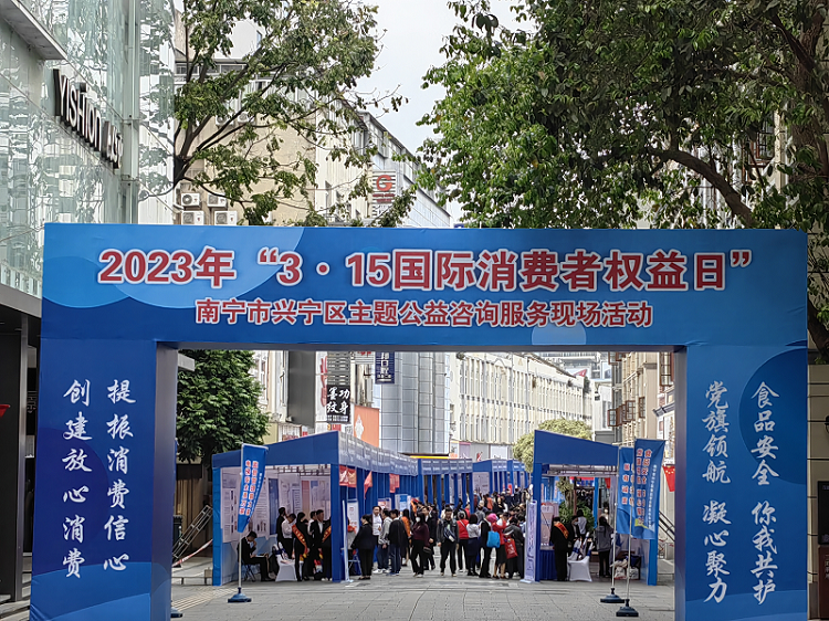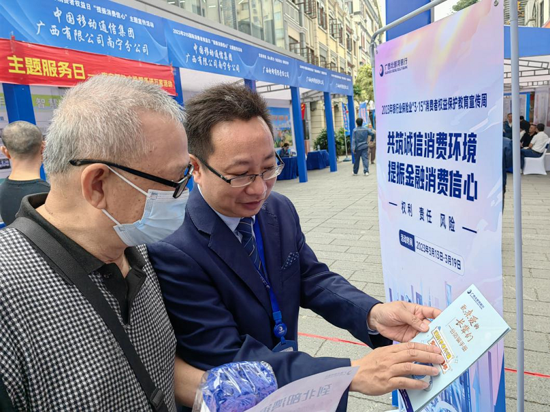 为进一步提高金融消费者的权利意识和风险意识,提升民众消费信心,履行金融工作者的责任担当,2023年3月15日,暨第41个“3·15国际消费者权益日”,广西北部湾银行南宁分行营业部积极响应总分行关于“315”消费者权益保护教育宣传周活动要求,通过分行的组织参加由南宁市兴宁区市场监督管理局、南宁市兴宁区民生街道办事处、广西打假扶优信息协会主办、广西保险行业协会协办的主题为“创建放心消费 提振消费信心”公益宣传活动。