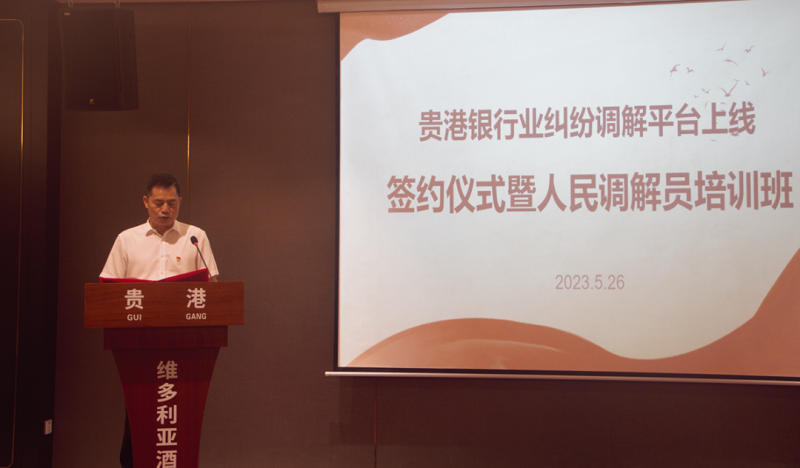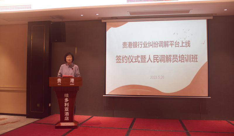 2023年5月26日,贵港银行业人民调解委员会成功举办贵港银行业纠纷调解平台上线签约仪式暨人民调解员培训。参加签约仪式及培训的有:广西银保监局一级调研员、广西银行业协会非会员理事韦向玲、广西银行业纠纷调解中心主任黄淑珍、贵港银保监分局二级调研员杨才茂、广西北部湾银行贵港分行行长(会长)黄捷、网纪信息技术(上海)有限公司总经理陶亮,以及各银行机构的代表、调解员和广西元丰律师事务所的特邀调解员。
