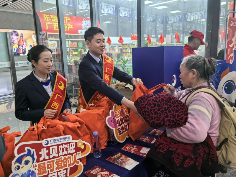 为了让每一位返乡的退役军人和家属感受到家的温暖,广西北部湾银行今年不仅在线上推出了“新春年货集市”“新钞预约”等特色服务,还在南宁火车东站设立专属服务展位,将服务搬到出站口,第一时间让退役军人及时了解到广西相关的金融支持政策,并为他们提供个性化、专业化的金融服务。“没想到银行还能给我们提供创业就业的帮助,这次回来我一定好好考虑留在家乡发展!”在南宁东站领取宣传手册的退役军人刘先生感慨地说道。