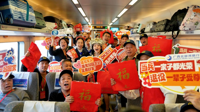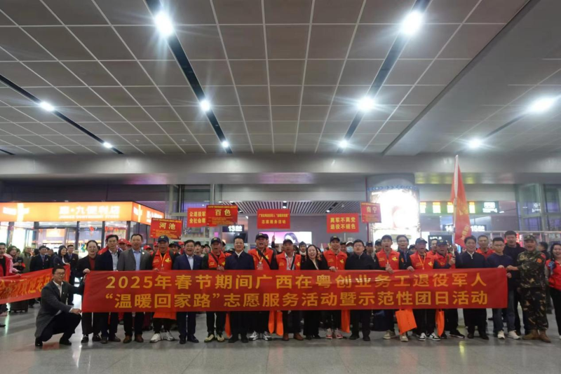 1月21日13时43分,随着D3616次列车缓缓驶出广州南站,由自治区总工会、自治区人民政府驻广州办事处、自治区退役军人事务厅、自治区人力资源和社会保障厅、中国铁路南宁局集团有限公司、广西北部湾银行共同主办的广西在粤创业务工人员2025年春节平安返乡“温暖回家路”活动正式启动,为坐上首发专列的110多名退役军人及家属送上温暖便捷的返乡服务和别样的新春祝福。