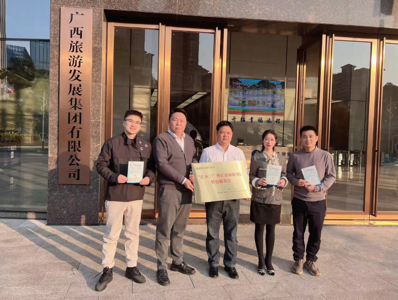 在外汇局广西分局的大力指导和支持下,渤海银行南宁分行认真总结前期经验,进一步优化服务模式,积极推动“汇小二”金融服务点拓面提质。2025年1月10日,渤海银行南宁分行以区内重点文旅国有企业——广西旅游发展集团有限公司作为第三批“汇小二”外汇金融定向服务点,双方开展了银企座谈会并举行了揭牌仪式。