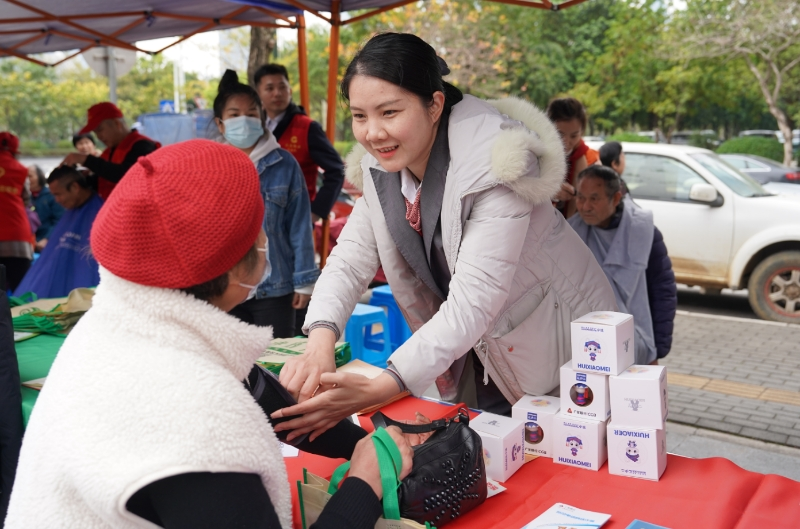 陈经理是众多志愿者中的一员。面对一位对她测量血压能力表示怀疑的大叔,她微笑着说道:“大叔,您放心,我在家经常给父母量血压,很熟练的,您坐好,马上就帮您量。”说着便熟练地摆好仪器,开始操作。当一位戴口罩的老人前来测血压时,陈经理赶忙上前搀扶老人坐下,轻声询问老人的身体状况,在仔细为老人测量完血压后,还不忘叮嘱老人日常的饮食和运动注意事项。