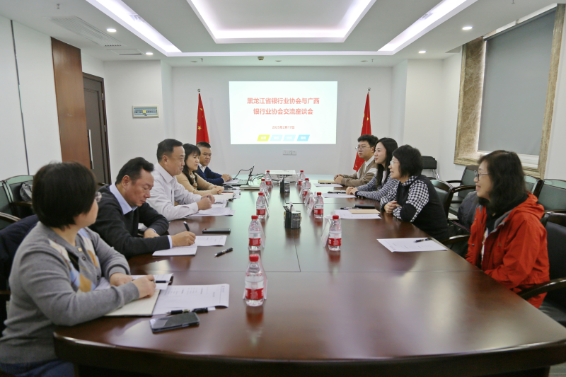 2025年2月17日,黑龙江省银行业协会王颖副秘书长一行到广西银行业协会就协会制度建设、银行业营业网点文明规范服务百佳、千佳示范单位评选以及清廉文化建设等重点工作开展考察交流。广西银行业协会毛宁副会长兼秘书长主持交流活动并参与座谈。