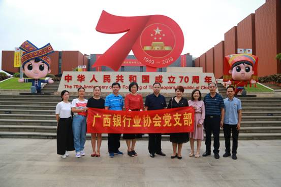 为庆祝新中国成立70周年,激励党员干部不忘初心、牢记使命、爱我中华、砥砺前行,2019年10月8日,在韦向玲书记带领下,广西银行业协会党支部组织全体党员、青年学习第十一小组成员和协会工作人员开展主题党日活动,前往广西规划馆参观“庆祝中华人民共和国成立70周年大型成就展”。大家依次参观了展厅内关怀篇、概况篇、历程篇、成就篇和展望篇等不同主题展区,回顾70年来在中国共产党领导下,建设壮美广西的伟大历程和取得成绩,充分感受到70年来广西翻天覆地的变化以及广西人民蓬勃向上、开拓进取的精神风貌。