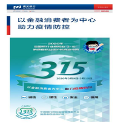 为进一步提高金融消费者的权责意识和风险意识,紧密结合疫情防控宣传,帮助金融消费者自觉远离和抵制非法金融业务,引导金融消费者理性维权,构建和谐、绿色的金融消费环境,浦发银行南宁分行从3月9日开始,在全辖网点开展为期两周的以“权利•责任•风险”和“金融消费者为中心助力疫情防控”为主题的 “3•15”消费者权益保护教育宣传周活动,让线上“不见面”和线下“安全距离”的消费体验更有温度。