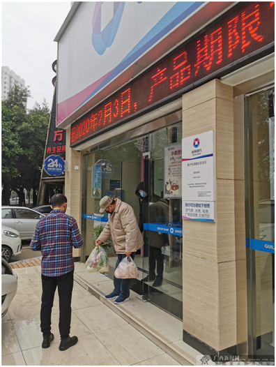 打造家门口的“菜市场”携手企业保供给保民生。随着新型冠状病毒肺炎疫情防控进入关键时期,多个居民小区实行封闭式管理,同时不少居民为减少疫情传播风险,也尽量避免去人群较多的菜市、超市,桂林银行第一时间关注到居民采买的不便,利用自身社区支行覆盖面广、服务人群多、离小区近等优势,联合食品供应企业——广西群邦、桂林力源联合推出食品同城配送服务。居民通过广西群邦的微信小程序“和岁丰”和桂林力源的“微信接龙”,在线上下单,广西群邦、桂林力源将食品配送到桂林银行各社区支行,居民在家附近的社区支行提货,缩小了活动范围。