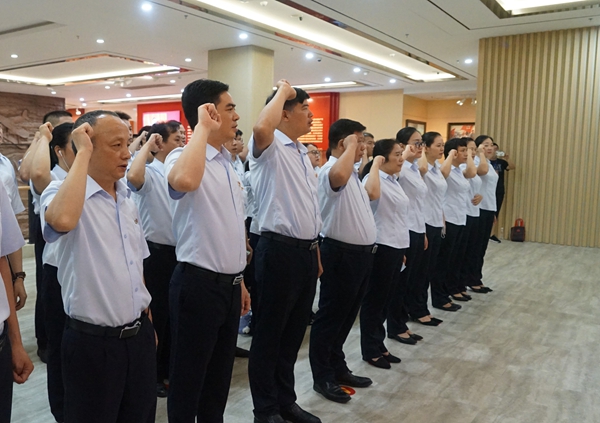 参观到最后,全体党员在鲜红的党旗面前重温了入党誓词,大家用高昂、奋进而又庄严的誓词表达了对党的忠诚和热爱。