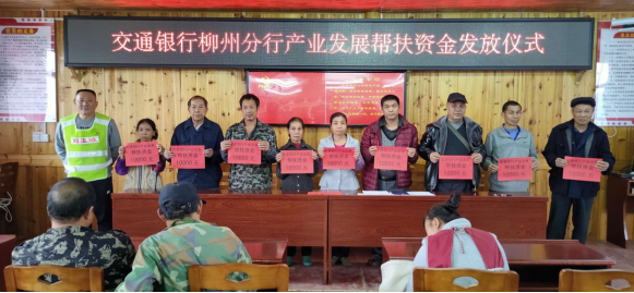 交通银行柳州分行向帮扶点捐赠产业发展帮扶资金。