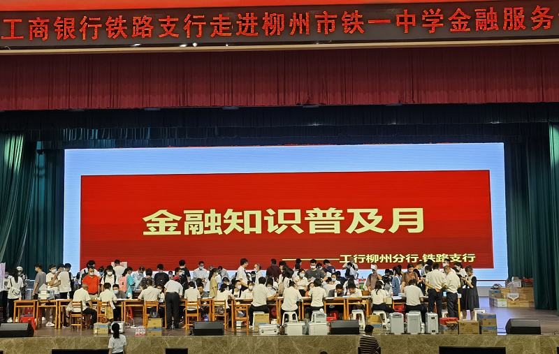 图为工行柳州铁路支行走进校园开展金融知识普及宣传。