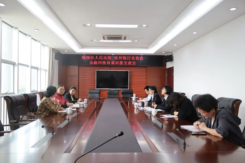 交流会上,刘连阶专职副会长兼秘书长分别对地方各法院对银行业工作的关心和支持表示衷心感谢,介绍了钦州银行业协会的组织架构和钦州银行业纠纷调解中心金融纠纷调解工作开展情况,同时就会员单位提出的胜诉案件诉讼费退费、案件执行难等问题向各法院交换了意见。大家对依托法院调解平台做好银行业纠纷在线调解和诉调对接有关工作进行了商讨。各法院参会负责人对胜诉案件诉讼费退费、案件执行难等问题分别进行了回应,并表示将积极参与建设现代社会治理格局,加强与金融管理部门、行业协会、调解组织协作配合,推进诉调对接工作的深度融合,为群众提供多途径、多层次、多种类的金融纠纷解决渠道,促进非诉解决机制与审判执行工作的顺畅衔接和高效流转。