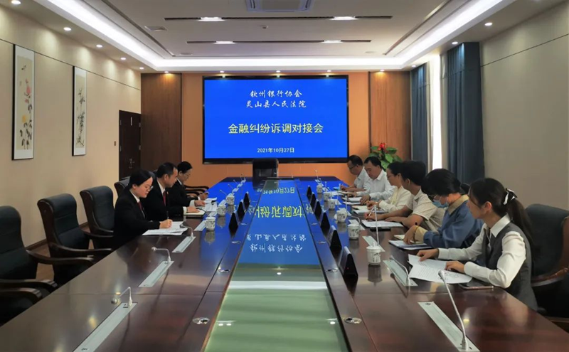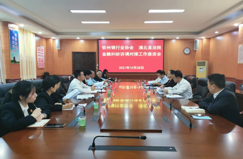 10月20日至10月28日,根据钦州银保监分局的工作安排,钦州银行业协会专职副会长兼秘书长刘连阶带领钦州银行业纠纷调解中心负责人及自律维权部工作人员分别到钦州市中级人民法院、钦南和钦北两区法院、灵山和浦北两县法院开展座谈交流,钦州市中级人民法院法院副院长张元成、钦南区人民法院副院长邱曼莉、钦北区人民法院副院长张世透、灵山县人民法院副院长伍迺海、浦北县人民法院副院长傅德忠和灵山、浦北县会员单位分管领导及相关人员分别参加了座谈。