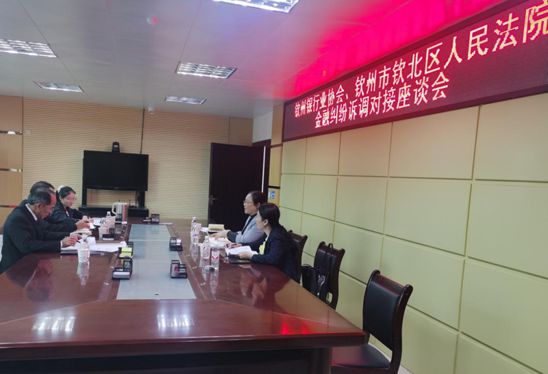 为积极推进钦州银行业金融纠纷多元化解机制建设,加快银行领域纠纷在线诉调对接系统上线运行的步伐,提升金融纠纷诉调对接工作成效,钦州银行业协会加强与人民银行钦州市中心支行、钦州银保监分局和广西银行业协会的沟通联系,积极与分局普惠金融科商议如何扩大钦州银行业人民调解委员会诉调对接覆盖范围,主动走访钦州市各级法院,汇报工作和反映情况,共同推动金融纠纷诉调对接工作。