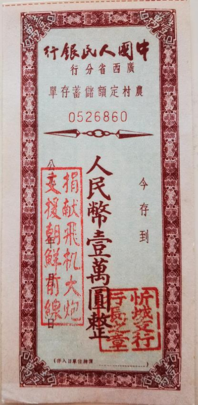 “讲红色故事”活动。支部书记通过一张泛黄的“抗美援朝一万元农村定额储蓄存单”,讲述了新中国立国之战——中国人民志愿军抗美援朝战争的故事。战场上领袖之子毛岸英英勇牺牲的事迹就如同精神的“原子弹”,鼓舞着志愿军冲锋陷阵、前赴后继,以坚定的理想信念和顽强的革命意志赢得了最终的胜利。如今,这穿越时空的精神“原子弹”,也激励我们对信念、信仰坚定不移,带头坚持党的领导,进一步把思想和行动统一到中央和总分行党委要求部署上来,全力以赴扎实做好各项工作,在“十四五”分行发展中展现新作为,贡献新力量。