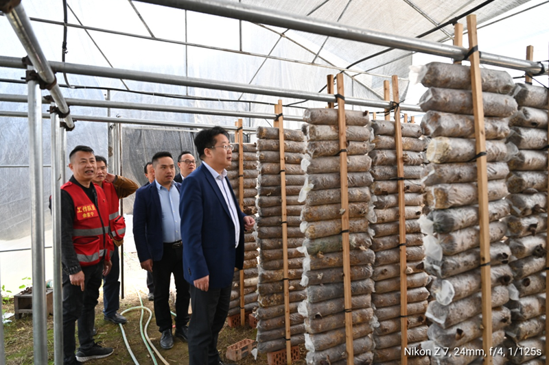 中国银行柳州分行行长带队到对口帮扶的西朗村开展春节慰问活动并到大棚内查看木耳种植情况