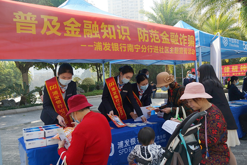 3月3日,浦发银行南宁分行开展“普及金融知识 防范金融诈骗——浦发银行南宁分行进社区主题宣传活动”。