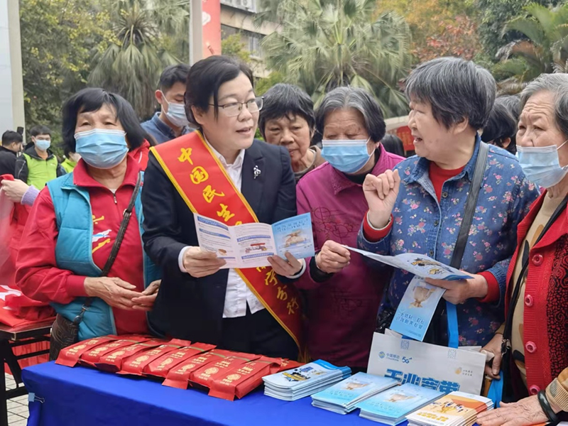 民生银行南宁分行利用下辖社区支行下沉服务社区的地理优势,积极与所在社区互动联系,参与社区志愿服务活动,为社区的居民特别是老年消费者开展金融知识普及,提升他们的金融素养和防范金融诈骗的能力。活动中,向社区居民发放金融消费者八大权益、防范电信诈骗、防范非法集资等宣传折页,为居民讲解存款保险、断卡行动等金融知识,现场也接受了居民们对于存款、理财、贷款等知识的疑惑咨询、及时进行解答。