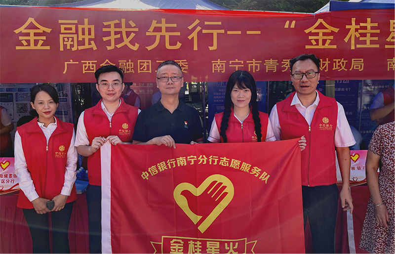 做好新市民金融服务,是推动实现人民共同富裕、建设 以人为核心的新型城镇化的重要举措,也是金融服务实体经 济的重要抓手。为深入贯彻落实银保监会和自治区人民政府关于加强新市民金融服务的工作部署,积极践行金融工作政治性、人民性,大力弘扬新时代文明新风,6月26日,中信银行南宁分行组织开展“服务新市民 金融我先行”志愿服务进社区活动,该行党委委员、纪委书记、副行长冯峻涛同志参加活动。
