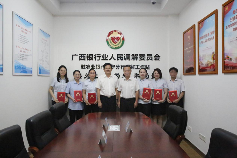 揭牌仪式上,广西银行业协会副会长兼秘书长毛宁对调解工作站的成立表示祝贺,对农业银行广西区分行给予调解工作站的大力支持表示感谢,现场向6位特邀调解员颁发聘任证书。他表示,本次工作站揭牌是贯彻落实最高人民法院、中国人民银行、中国银保监会《关于全面推进金融纠纷多元化解机制建设的意见》的生动实践,是广西银行业人民调解委员会与农业银行广西区分行共同推进促进金融矛盾纠纷多元化解体系不断完善升级的体现,也是矛盾纠纷源头共治、合力共治的诉源治理理念的重要体现,对防范金融风险、保护金融消费者合法权益、保障金融行业持续健康发展具有重要意义。希望双方继续践行“以人民为中心”的发展思想,不断创新纠纷解决机制,为优化金融环境和支持实体经济贡献新的更大力量。