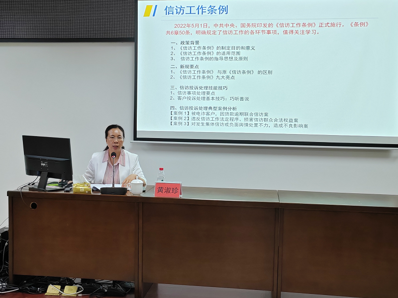 本次培训内容丰富,涵盖个人金融业务风险合规管理、原银保监会《银行保险机构消费者权益保护管理办法》(9号令)解读、投诉管理系统新功能介绍等,同时还邀请了广西银行业纠纷调解中心黄淑珍主任讲解金融消费纠纷调解政策解析及其运用。