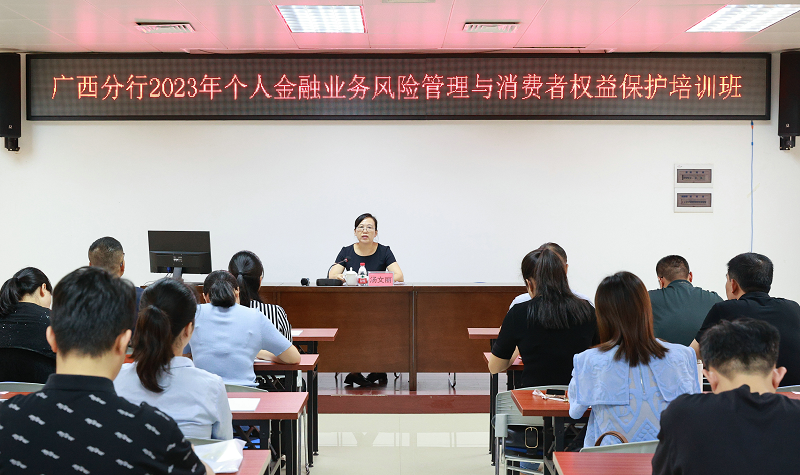 为做好个人金融业务风险管理和消费者权益保护工作, 防范业务风险,9月7至8日,农业银行广西分行举办全区2023年消费者权益保护培训班。区分行个人金融部负责人、消保单元全体员工和各二级分行个人金融部分管负责人、业务骨干、一级支行消保专员等共63人参加了培训。