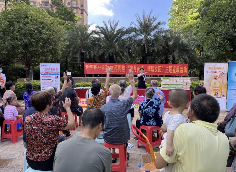 中国银行广西区分行切实履行金融教育工作主体责任,深刻把握人民群众对金融知识普及的新期盼,聚焦“一老一少”等特殊群体及边远地区,线上线下并举,网点内外贯通,积极构建常态化阵地化宣传教育机制,创建广西首家农村金融教育基地--上林大山村自治区级金融教育示范基地,打通乡村宣教“最后一公里”,助力乡村振兴。通过积极开展有特色、有成效的金融知识普及宣传教育活动,不断提升消费者金融素养,践行大行社会担当,共建良好金融生态。积极推广“岁悦长情”养老服务品牌,从服务机制、硬件建设、智能应用、宣传教育和权益保护五大维度入手,着力打造“贴心敬老、暖心爱老、用心智老、精心惠老、尽心护老”的“五心”适老化金融服务,以行动的力量,展现大行担当,推动适老金融服务模式再优化,客户服务体验再提升。