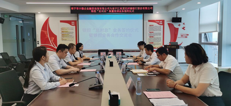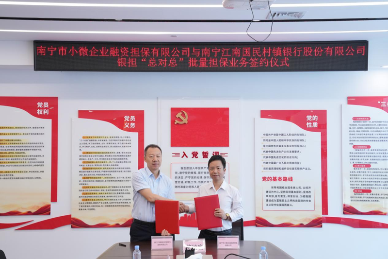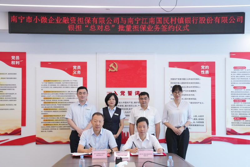 2023年10月17日,南宁江南国民村镇银行(以下简称“国民村镇银行”)与南宁市小微企业融资担保有限公司(以下简称“南宁小微担保公司”)开展银担“总对总”批量担保业务签约仪式。