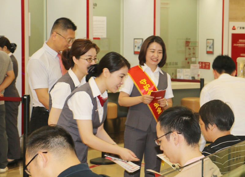 活动期间,广发银行南宁分行进一步加强了厅堂服务精细化管理工作,做好客户服务,倾力打造全新服务形象,以更加热情和真诚的微笑,迎接每一位客户的到来,耐心解答每一位客户的咨询,倾听客户声音,在提升客户服务与体验中“全面思考”,在产品营销和互动中“换位思考”,积极搭建、打通客户与银行间信任信赖的桥梁。期间,网点厅堂的“金融知识宣传大使”们还主动向客户发放金融知识宣传折页,邀请客户一同观看南宁分行制作的教育宣传视频,讲解分析典型案例,帮助客户提高风险防范意识。