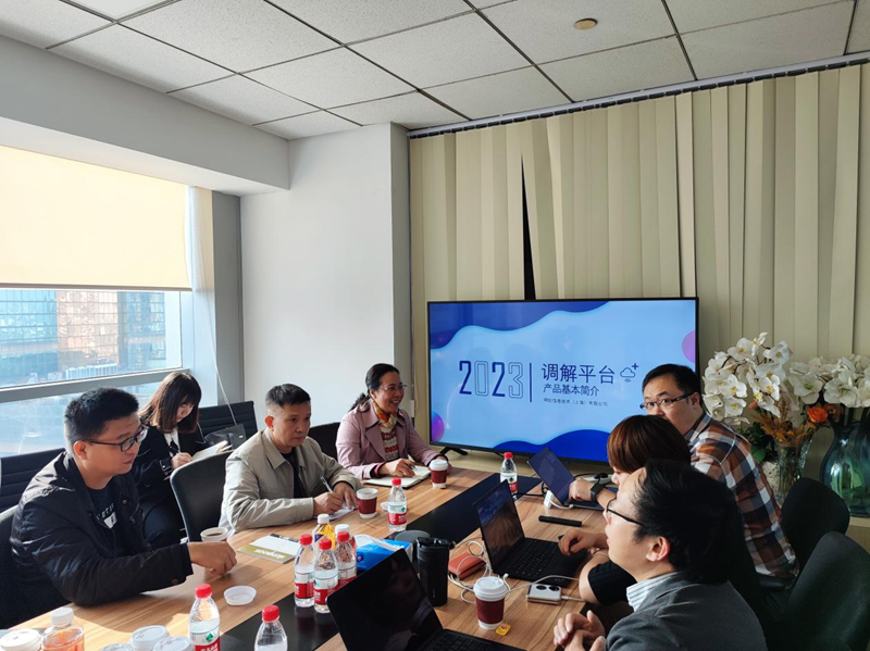 在与网纪信息技术(上海)有限公司的交流会上,该公司高级系统架构师详细介绍了“一站式纠纷调解平台系统”升级换代的四大特色功能---人工智能AI外呼系统嵌入、安全运维资质多重认证、诉调直连、同步/异步双调解模式。随后,双方围绕广西银行业纠纷调解平台,在行业调解科技化智能化、解纷效率、系统升级存在的困难和问题进行了深入交流。为下一步广西银行业纠纷调解平台系统创新升级,全线上沟通调解及签署协议、一站式、跨时空完成全流程调解工作提出可行的解决方案。