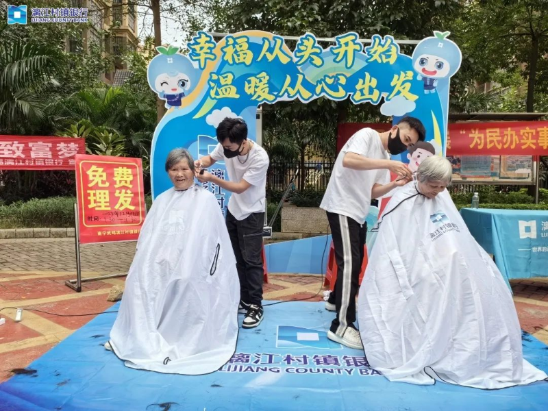 南宁武鸣漓江村镇银行在南宁市武鸣区城区、乡镇开展为期一个月的“幸福从头开始,温暖从心出发”爱心剪发以及VIP惠民日活动。南宁武鸣漓江村镇银行工作人员通过电话邀约、摆放宣传展板、悬挂横幅等方式广泛推广活动,不仅有免费理发,还设置各种有奖游戏,期间吸引了武鸣城区、乡镇约2000余人,前来参加活动的群众络绎不绝,活动现场热闹非凡。