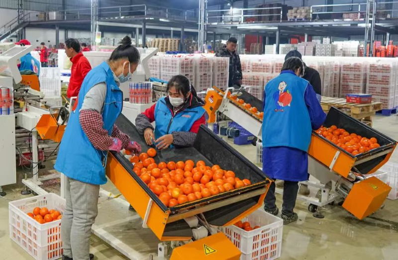 广西起凤橘洲果业有限公司厂房内工人正在分拣沃柑