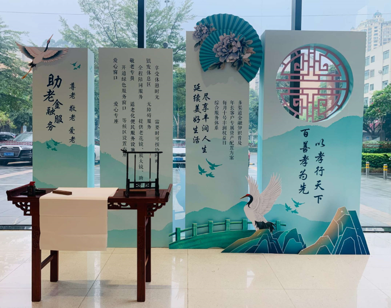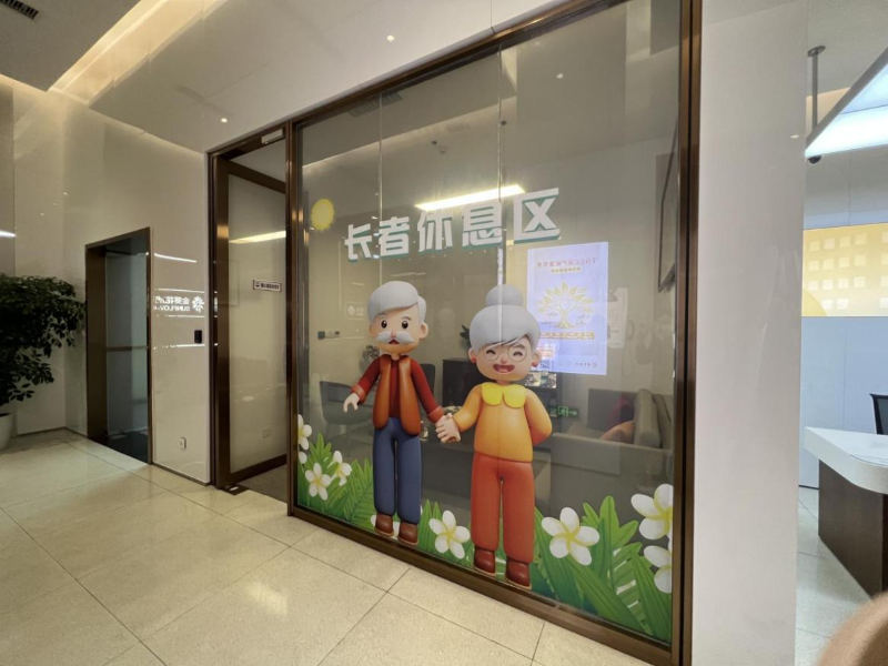 营业部为老年客户打造“长者休息区”,提供独立的休闲活动和阅读场所;同时布置特色敬老服务文化专区,营造“尊老、敬老、爱老”的服务文化氛围,通过大字版公示适老服务项目,为老年客户配备“敬老服务专员”,提供全程陪同服务。