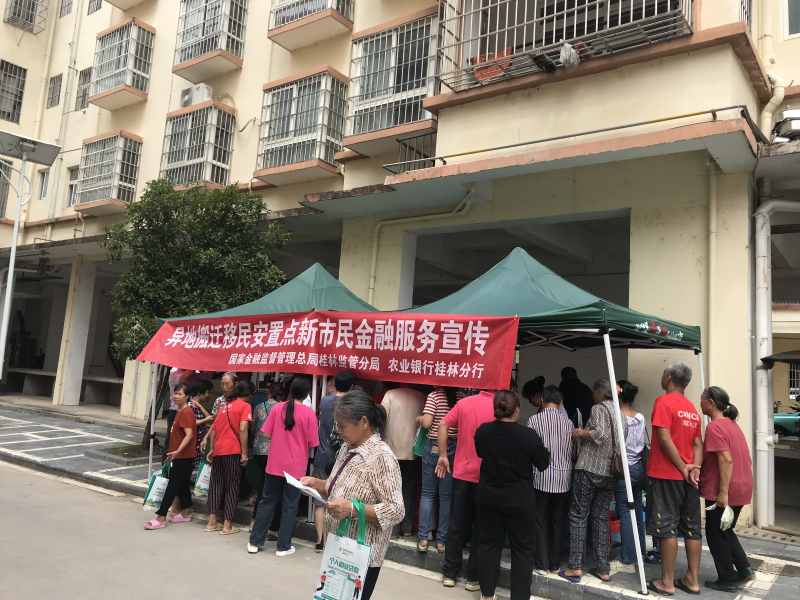 (三)强化易地搬迁重点区域的项目带动。一是持续加大“易安后扶”信贷投放,积极支持安置区项目及基础设施建设,如来宾分行投放1.95亿元贷款支持象州县江滨园区失地农民安置项目建设,安置失地农户约2000人。二是积极支持“扶贫车间”、安置区附近社区工厂、产业园区等发展,引导企业吸纳脱贫人口、“易安后扶”新市民就业增收。如崇左分行积极利用政府“扶贫车间”名单,投放贷款14.21亿元大力支持“扶贫车间”发展生产,引导企业吸纳脱贫人口近400人就业增收。三是主动对接新市民需求,提供“富民贷”、“惠农e贷”、信用卡、聚合码等产品,助力搬迁新市民实现“家门口”就业创业。如都安县支行积极支持安置区旁的粤桂扶贫协作八仙产业园内企业发展,投放小微企业贷款300万元,带动安置区居民实现“家门口就业”。四是完善“易安后扶”金融服务渠道建设,在马山合福社区、隆安震东社区设置人工网点,在三江南站易地扶贫搬迁安置片区设立自助银行,设置惠农通工程服务点,持续优化取款、转账等基础金融服务,解决安置区金融服务缺失难题。