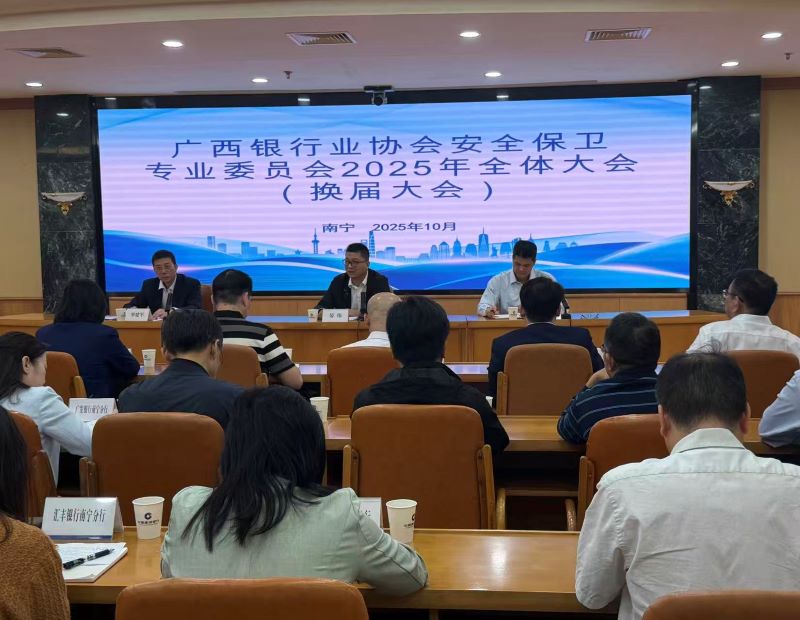 10月22日上午,广西银行业协会安全保卫专业委员会2025年全体大会(换届大会)在南宁顺利召开,协会专职副会长晏伟出席会议并讲话,第二届安保委主任罗建军主持会议并作工作报告。