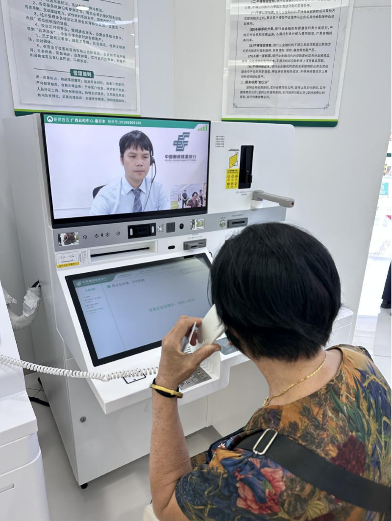走进邮储银行南宁市分行网点,科技感扑面而来:“新伙伴”智能机具已赫然成为网点柜台主力军,承接网点大量业务。数据显示,2025年,该分行自营网点可分流交易离柜率已提升至96.99%,这意味着绝大多数非现金业务已从传统窗口迁移至指尖和屏端。与此同时,一种名为“云柜”的远程服务模式正在推广,通过ITM设备或外拓移动终端,客户可与远程柜员视频连线办理复杂业务,目前移动展业云柜模式推广率达100%。“相当于把柜台‘装进了平板电脑’,上门为企业开卡、为行动不便的居民激活社保卡,都成了常态”该行客户经理介绍到。