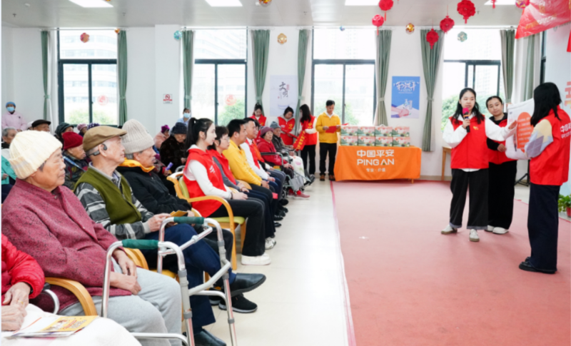 在学雷锋月与“3・15”国际消费者权益日来临之际,平安银行南宁分行联合平安集团各子公司,及南国早报、南宁市江南区文明办、南宁市江南区民政局、广西八桂义工协会志愿者,走进南宁市江南区民政综合园——华邦美好家园(南宁江南)孝慈苑,开展 “爱暖夕阳 孝慈相伴”志愿服务活动,为院内约120位长者送上暖心关怀与专业金融防护,以实际行动践行企业社会责任,用心守护老年群体金融消费安全。