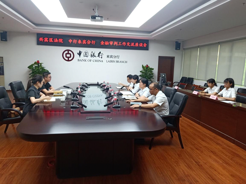 揭牌仪式后,中国银行来宾分行与来宾市兴宾区人民法院就金融审判工作开展业务交流。座谈会上,中行介绍了今年以来诉讼案件办理情况,法院对中行提出的当事人身份验证和借款合同网上存证以及信用卡立案等问题予以积极回应,并就如何解决相关问题以及进一步优化工作提出了建议方案。
