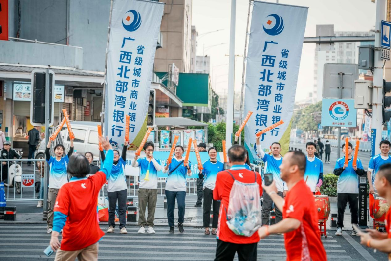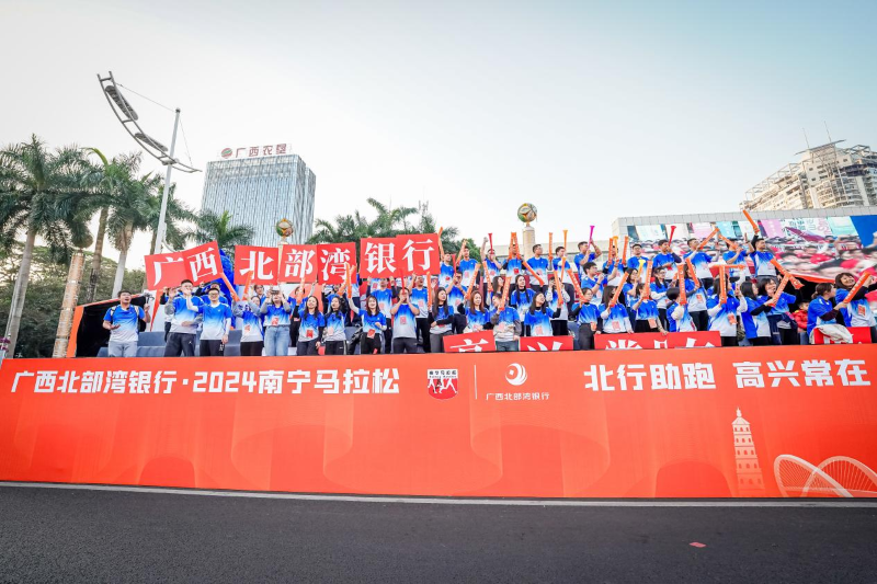 广西北部湾银行作为本届南宁马拉松比赛的冠名赞助商,积极推动“体育+金融”跨界融合,与活动主办方紧密配合,全程深度参与本届赛事的筹备与执行。在参赛区,广西北部湾银行领导班子带领干部职工组成企业方阵,手持行旗、手举北行logo标语牌精神饱满地闪耀赛道。赛事沿途,北行布置了品牌标识展示区,重点打造“北行一公里”,在南湖大桥、青秀路沿线布置了1公里的助威画面及拉拉队,进一步扩大北行的品牌影响力。42公里的赛道上,超300名员工组成的拉拉队、振奋的擂鼓和精彩的舞狮表演,热烈激情的加油助威给予参赛选手们坚持到底的动力,成为赛道上一道亮丽的风景线。在赛事终点处,北行特别设立精美的打卡互动区、奖牌刻印区以及特色金融服务区,为跑友们提供多样化的服务,普及宪法知识,提升消费者合法权益保护意识,切实践行金融工作的政治性和人民性。