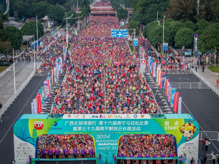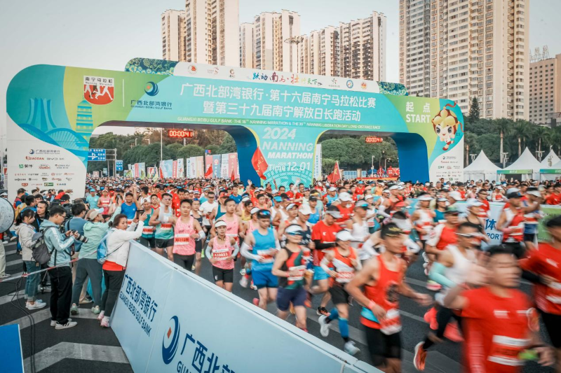 12月1日,广西北部湾银行·第十六届南宁马拉松比赛暨第三十九届南宁解放日长跑活动在绿城南宁鸣枪起跑,3万名来自国内外的跑者齐聚一堂,用脚步感受邕城的脉动与活力,实现属于马拉松比赛的速度与激情。
